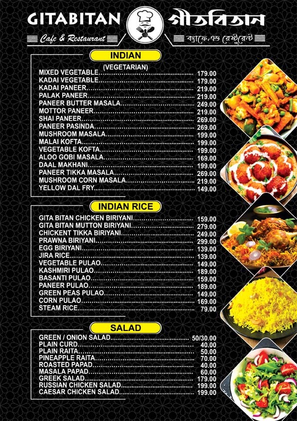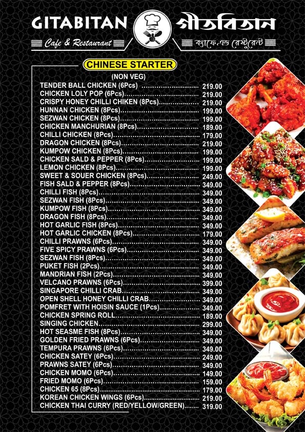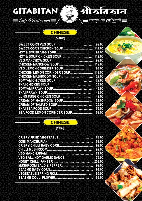 Welcome to GITABITAN CAFE & RESTAURANT, where every meal is a culinary adventure! We bring together the rich flavors of Indian spices, the exotic tastes of Chinese cuisine, and the timeless classics of Continental dishes to create an unforgettable dining experience. From the sizzling delights of our Tandoor to refreshing mocktails, smoothies, fresh juices, and milkshakes, there’s something to delight every palate. Craving comfort food? Enjoy our range of pizzas, burgers, and more — all served with a modern twist. At GITABITAN, we celebrate food, family, and flavor in a vibrant, welcoming atmosphere. Whether it’s a casual meal, a family outing, or a special occasion, your delicious escape starts here. Discover a world of taste, only at GITABITAN CAFE & RESTAURANT!